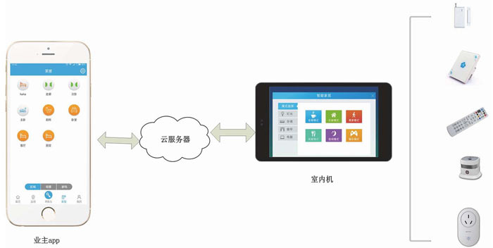 1.業(yè)主app控制開關(guān),點(diǎn)擊開關(guān)后,會通過云服務(wù)器通知給室內(nèi)機(jī),最后室內(nèi)機(jī)通過zigbee協(xié)議去控制一些可控開關(guān)。