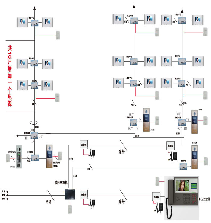 根據(jù)接線圖把單元內(nèi)所有的設(shè)備通上電源,在門口機輸入4位或3位房號后,門口機有提示聲,室內(nèi)分機按接聽后,即可對講。