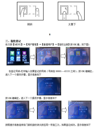 4)員工按壓方法不正確,應(yīng)該使用指紋面于感應(yīng)器平行,使按壓時(shí)充分的接觸面積提高感應(yīng)速度